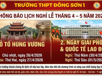 [LAN TỎA NHỮNG ĐIỀU TỐT ĐẸP] – “LẤY CÁI ĐẸP DẸP CÁI XẤU” -...[LAN TỎA NHỮNG ĐIỀU TỐT ĐẸP] – “LẤY CÁI ĐẸP DẸP CÁI XẤU” - "LẤY CÁI TÍCH CỰC ĐẨY LÙI TIÊU CỰC"Thực hiện Kế hoạch năm học, Trường THPT Đông Sơn 1 đã tổ chức chuyến học tập thực tế tại Hà Nam (nay thuộc Ninh Bình) trong hai ngày 28–29/3, với các điểm đến: Địa Tạng Phi Lai Tự; Chùa Tam Chúc và Chùa Cây Thị.